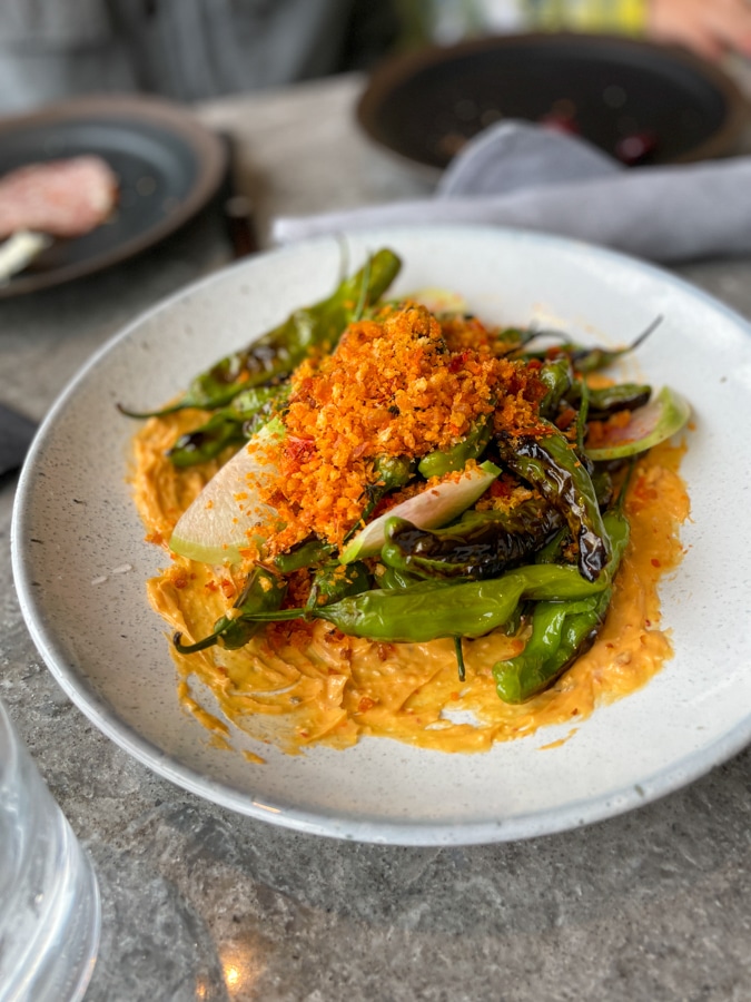 We shared a cheese board, shishito peppers, salad and pizzas. Plus apple crisp! Delicious! (Mazen was sad they took the nachos off the menu 🙁 )