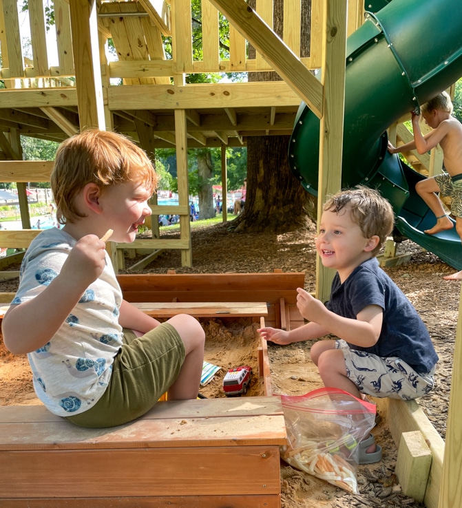 Especially because Birch is a pandemic toddler, he hasn’t had as much interaction with peers as Mazen did when he was young. So it’s been so great to see him giggling with friends!