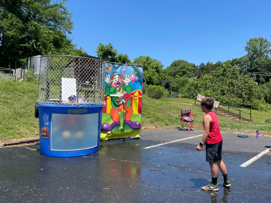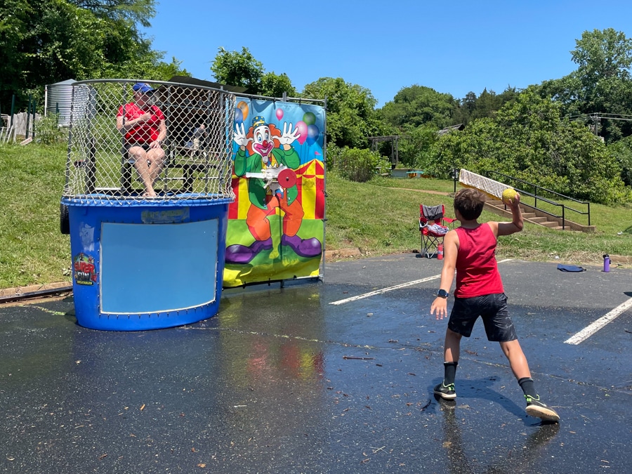 More than seeing Mazen dunk his principal, I loved seeing him with his teacher and class! These guys spend so much time at school, but we don’t get to actually be there to see it happen! But I hear names of his friends and classmates all the time, so as the kids came through the dunk tank and Dr. K was shouting them out I recognized so many names I’d heard at the dinner table.